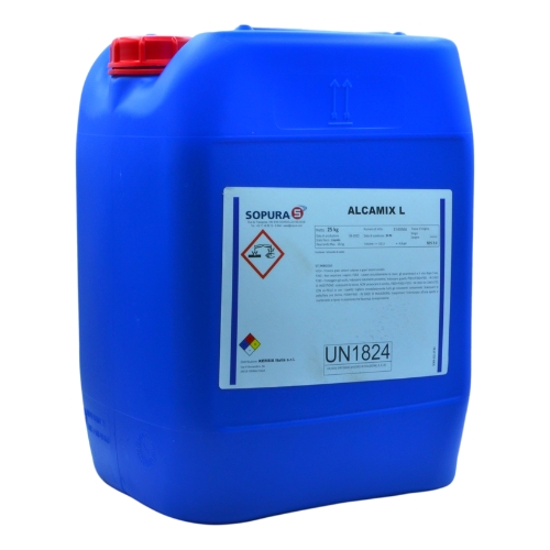 Detergente Alcalino a base di idrossido di sodio (soda caustica), tensioattivi non ionici non schiumanti e di agenti sequestranti.