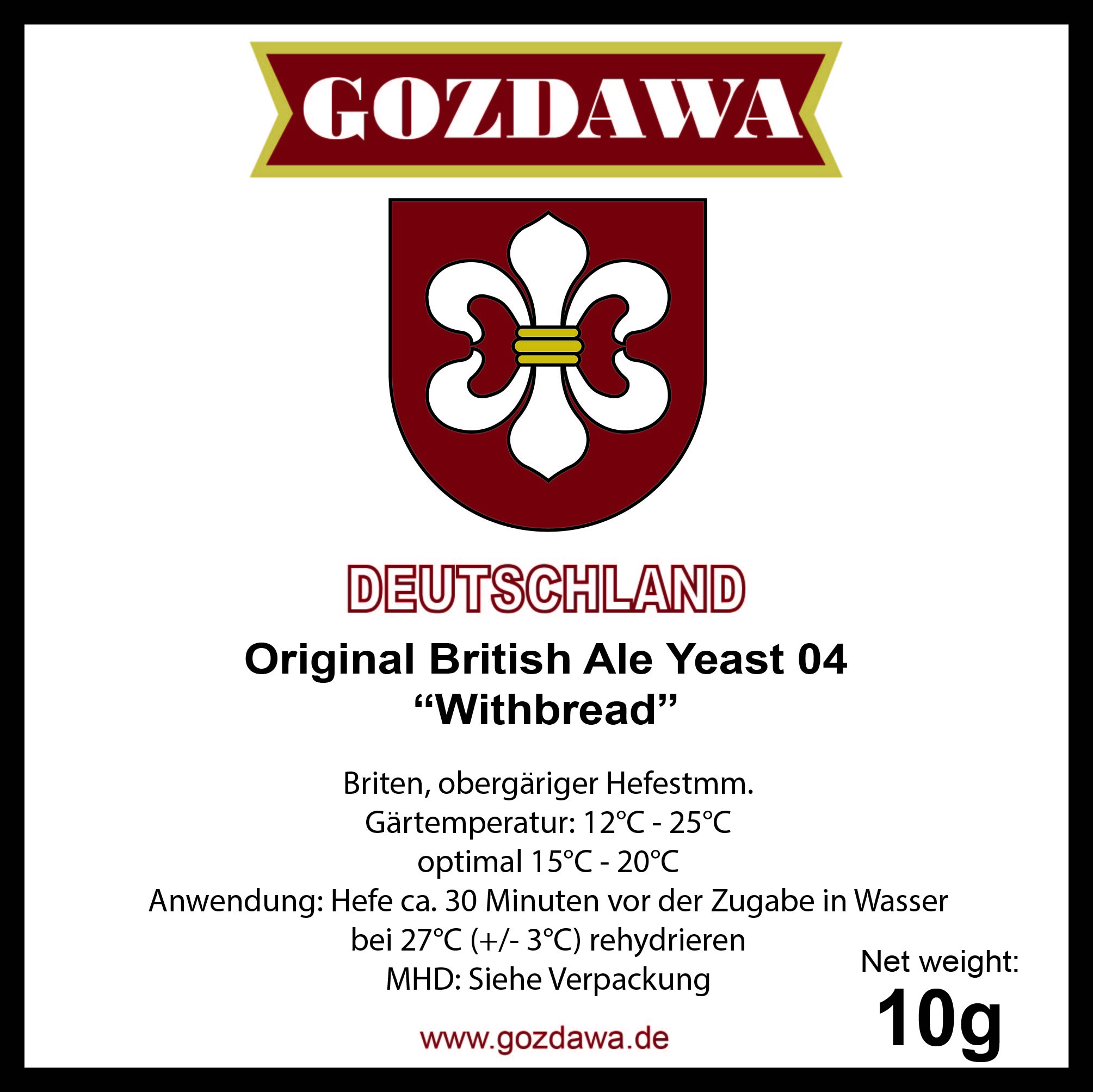 Gozdawa British Ale 04 Withbread è il lievito per birra perfetto per la produzione delle classiche pinte britanniche. Profilo di fermentazion e pulito con una buona attenuazione, forma un sedimento compatto che lo rende indicato per le birre rifermentate in bottilgia.