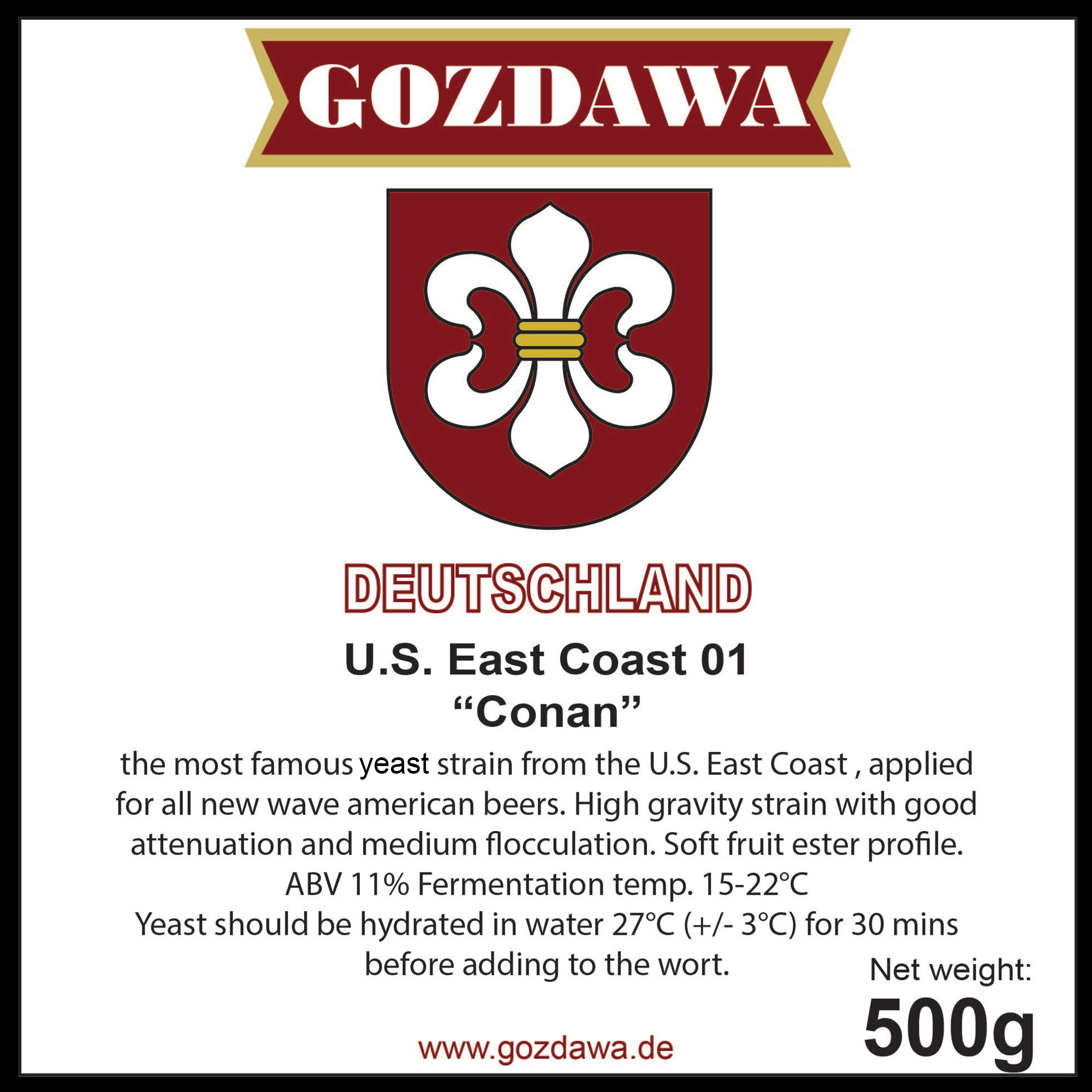 Si tratta del lievito per birra più famoso della East Coast americana. Il lievito Gozdawa East Coast “Conan” è uno dei simboli della new wave adelle birre luppolate. Caratteristico aroma di frutta tropicale, enfatizza gli aromi del luppolo. Adatto per mosti ad alta densità, buona attenuazione.