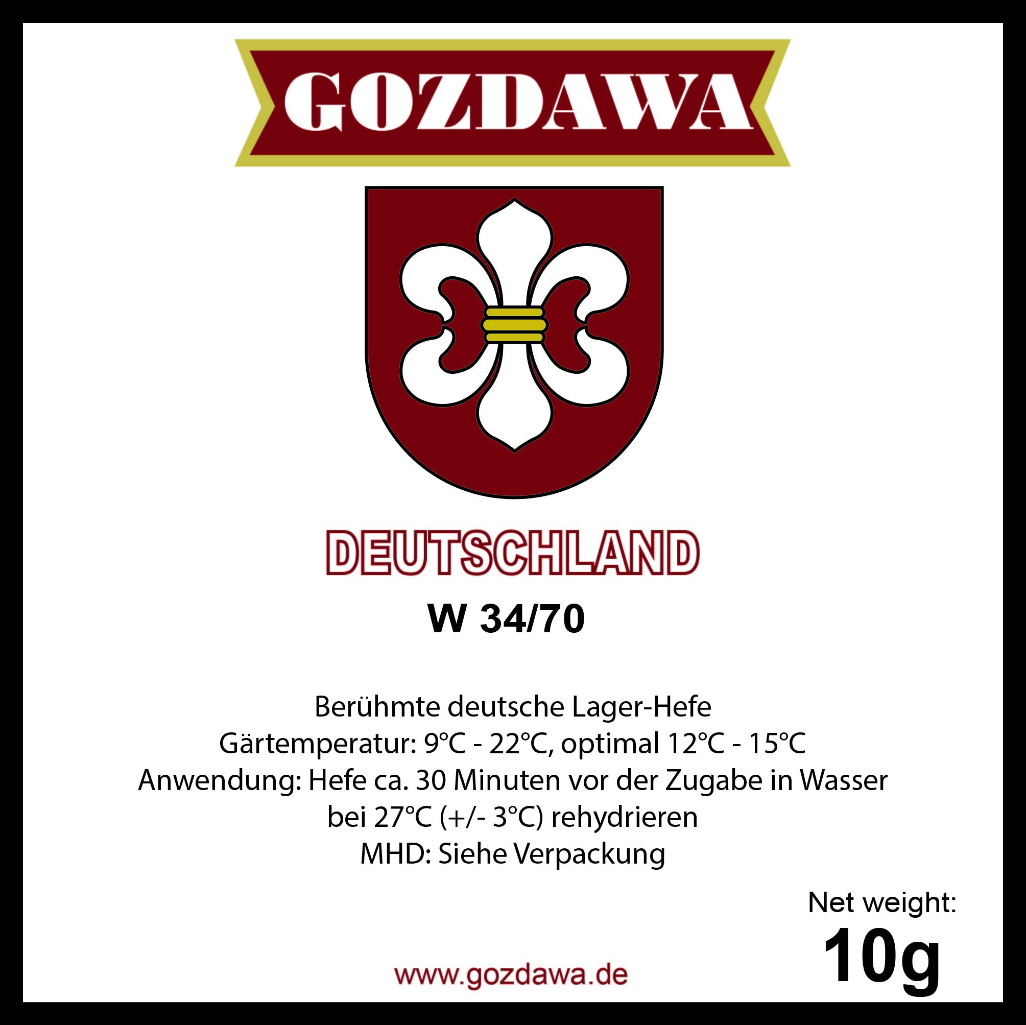 Il lievito per birra Gozdawa W34/70 è il più popolare lievito tedesco a bassa fermentazione. Perfetto per la produzione di lager e pils, ha un profilo pulito che permette al malto di esprimersi al meglio all’interno della birra.