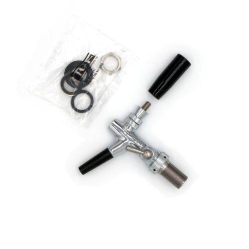 Rubinetto per impianti e colonne di spillatura in acciaio cromato e beccuccio in plastica.