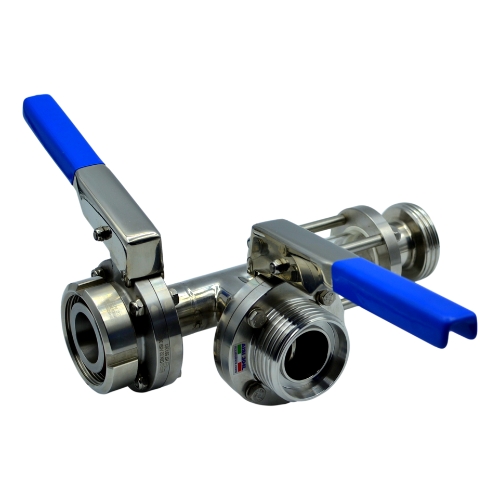 TEE CON SPECOLA VISIVA COMPLETO DI VALVOLE A FARFALLA DN32, ATTACCHI F M+G SUI RAMI E F SUL TRONCO, IN ACCIAIO AISI 304